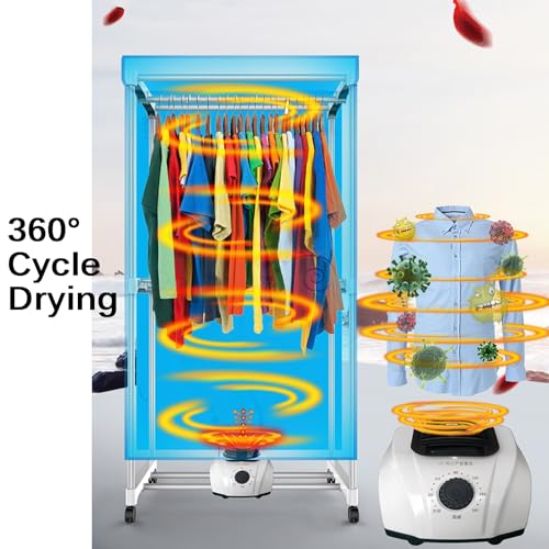 【Krachtige prestaties】De droger maakt gebruik van milieuvriendelijke hittebestendige materialen en PTC-keramische materialen. Thermische circulatie en convectie drogen kleding efficiënt, zodat je zelfs bij aanhoudend vochtig weer mooie en warme kleding kunt dragen. Vermogen: 1000W.