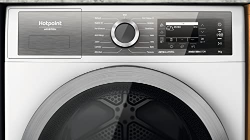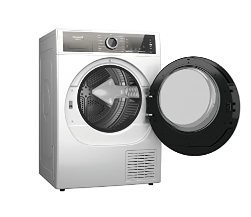 Vrijstaande hotpoint-droger: uitstekende capaciteit van de mand van 9,0 kg, zodat je nooit zonder ruimte blijft. Elegant design met veiligheidsscherm.